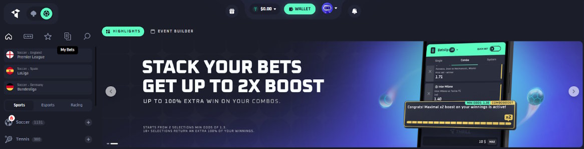 As a cutting-edge platform, Thrill.com operates as a pure crypto sportsbook. The wallet integration is seamless and modern, supporting major digital currencies like Bitcoin, Ethereum, Tether, and Binance Coin.
