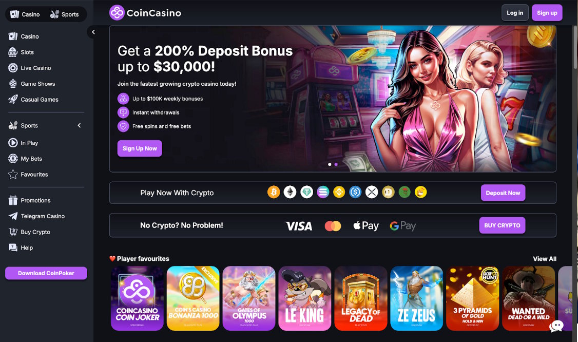Once your deposit is complete, claim your bonus and start exploring thousands of games. Coin Casino ranks among the best crypto casinos for its fast payouts, generous rewards, and secure gaming environment.